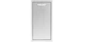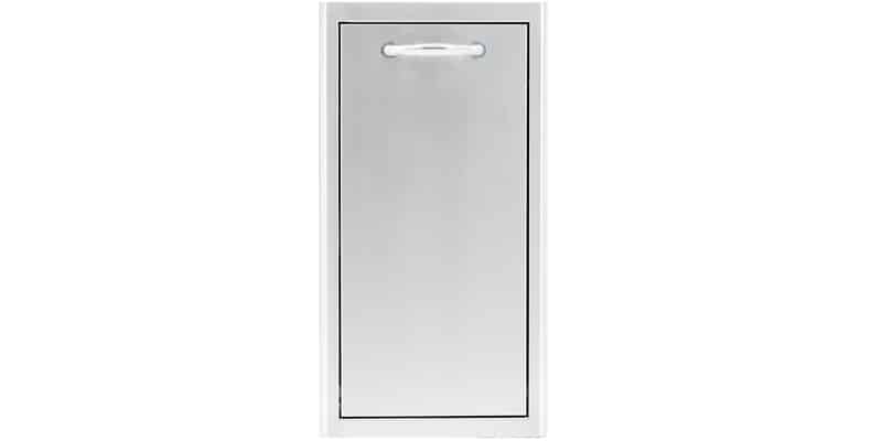 Stainless steel construction is durable in outdoor conditions.Adds convenient storage in any outdoor kitchen.Narrow design perfect for smaller or more congested outdoor areas.Rounded bevel design adds structural integrity to the door.Roll out drawer allows for easy lifting and emptying of your trash bin.Includes a 42 qt trash bin.