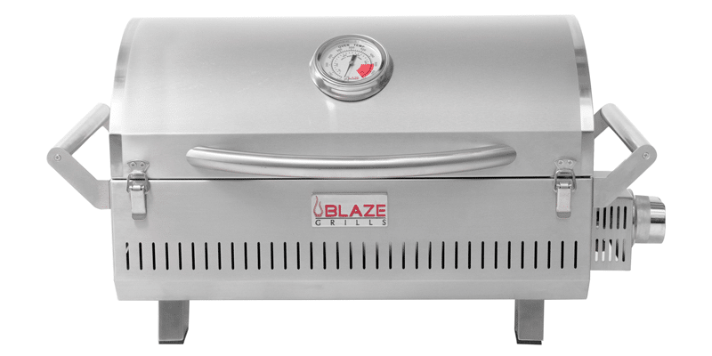 304 grade stainless steel construction resists rust and corrosion. Has the same flame thrower ignition as the built-in and freestanding grills. Utilizes the heavy duty cast stainless steel H burner, flame tamers, abd 12mm hex cooking grids as the built-in Pro series grills. Uses 1-lb. Propane Cylinder or 20-lb. propane tanks with tank adapter. Can reach temperatures high enough to sear steaks. Two front facing clasps for locking the lid in place during storage or transport.