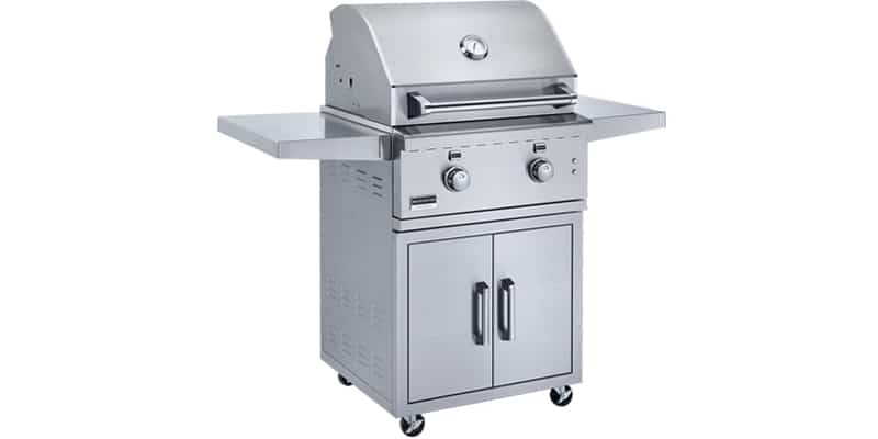 The Broilmaster Stainless BSG262 gas grill comes fully loaded with a variety of standard features, offering both convenience and versatility. Two Bow Tie burners (18,000 BTUs each) and up to 540 square inches of cooking area provide a variety of cooking options for a smaller crowd. The stainless steel cart provides convenience by allowing you to put your grill almost anywhere you want. The side shelves provide additional food preparation space and the soft close doors allow for easy storage.Cart sold separately.