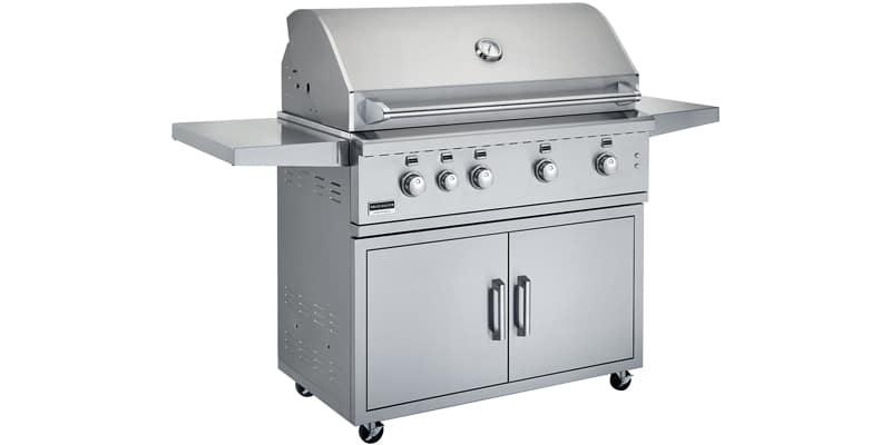 The Broilmaster Stainless BSG424 gas grill comes fully loaded with a variety of standard features, offering both convenience and versatility. Four Bow Tie burners (18,000 BTUs each) and up to 918 square inches of cooking area provide a variety of cooking options for any size crowd. Bring your kitchen outside with a built-in grill customized with side burners and storage options to optimize your cooking space and add convenience to your grilling experience.Cart sold separately