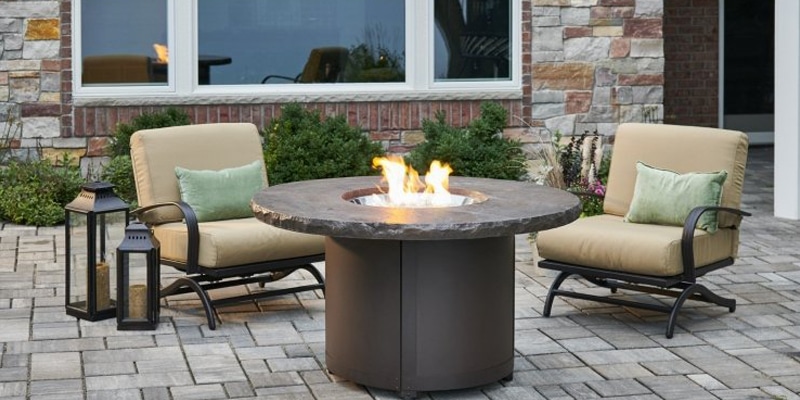 The Beacon Gas Fire Pit Table Collection is a beautiful new take on a classic style. The unique Marbleized Noche Supercast™ concrete top sits upon the durable powder-coated steel base. Chat height naturally invites guests to the sit around the fire and relax. The 20″ Crystal Fire® Plus Burner is UL Listed for safety.