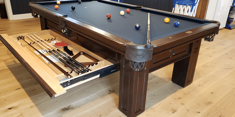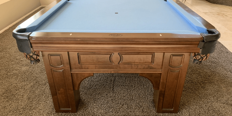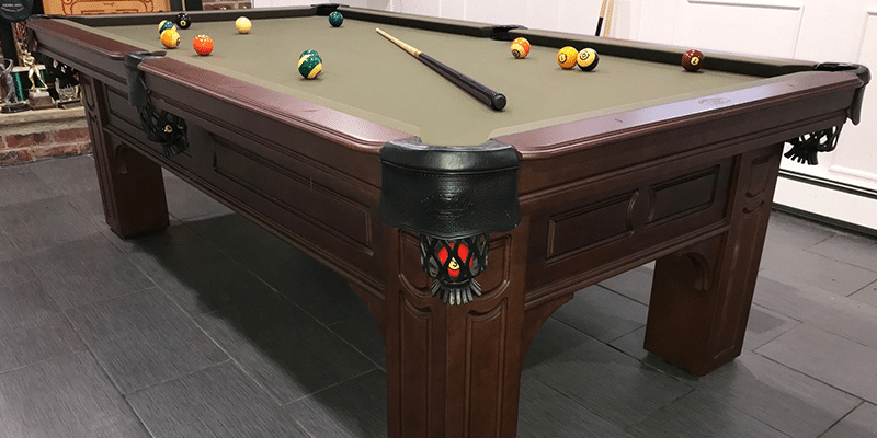 The Remington pool tables is made from Solid Wood and features flat paneled apron with routered detail with floor to slate leg design. All Olhausen Pool tables are hand-crafted at our 250,000 sq. ft. manufacturing facility in Portland, TN and feature Accu-Fast Cushions and our Lifetime Warranty.