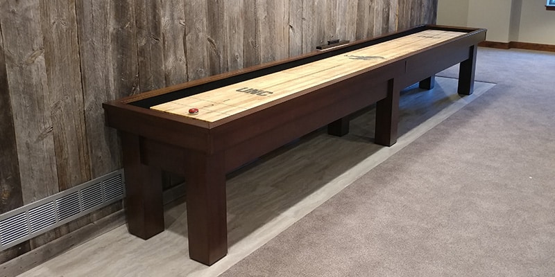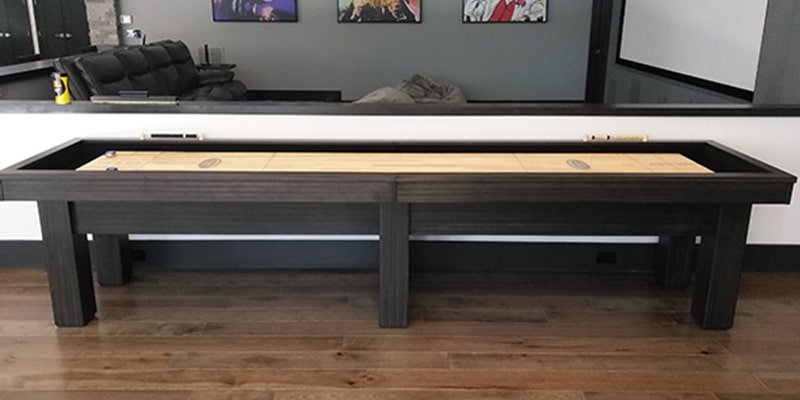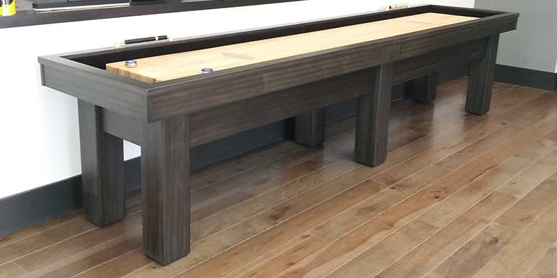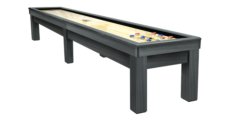 The West End Shuffleboard Table is made from Solid Wood and features flat paneled cabinet and pedestal base legs. All Olhausen Shuffleboards are hand-crafted at our 250,000 sq. ft. manufacturing facility in Portland, TN.
